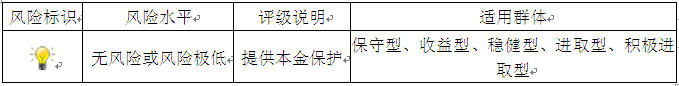 本期产品为保本浮动收益型理财产品,本理财产品有投资风险,只保障理财资金本金,不保证理财收益,您应当充分认识投资风险,谨慎投资。本期产品期限为90天(中国建设银行有权对产品进行展期或提前终止)。本期产品内部风险评级级别为一盏警示灯,风险程度属于无风险或风险极低,适用于保守型、收益型、稳健型、进取型及积极进取型投资者。最不利情况下,客户只能收回投资本金,不能获得任何投资收益。